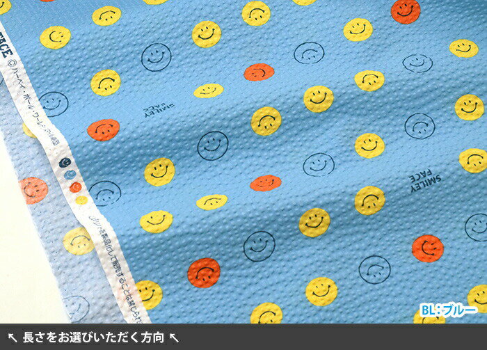 【SMILEY FACE】マルチスマイリー(リップル)スマイリーフェイスが並んだデザイン【生地・布】SMIRF-01 数量3(30cm)から10cm単位